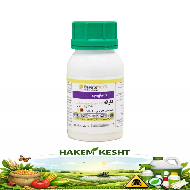 کاراته زئون حاوی ۱۰۰ گرم ماده موثره لامبدا سای هالوترین با تکنولوژی زئون می باشد و توسط میکروکپسول هایی احاطه می گردد که پس از سمپاشی به سطح برگ چسبیده و سریعا خشک می شوند. میکروکپسول ها به محض خشک شدن می ترکند و ماده موثره را در محیطی ۴۰ درصد بزرگتر از قطر ذره سم، پخش می کنند.